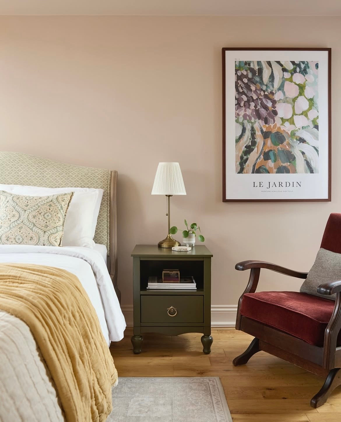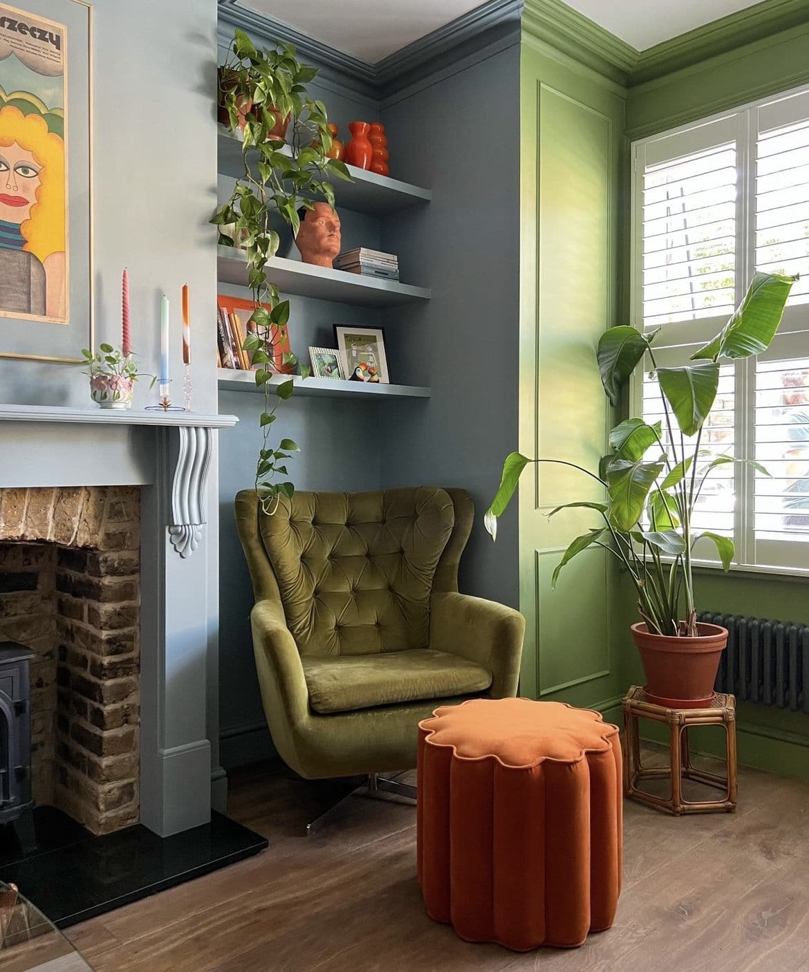 The cosiest of spaces with Farrow & Ball Calamine painted walls, inspiration and image credit to Yasmin Fatollahy. Love this look? Recreate this beautiful décor in your home with Ebony...